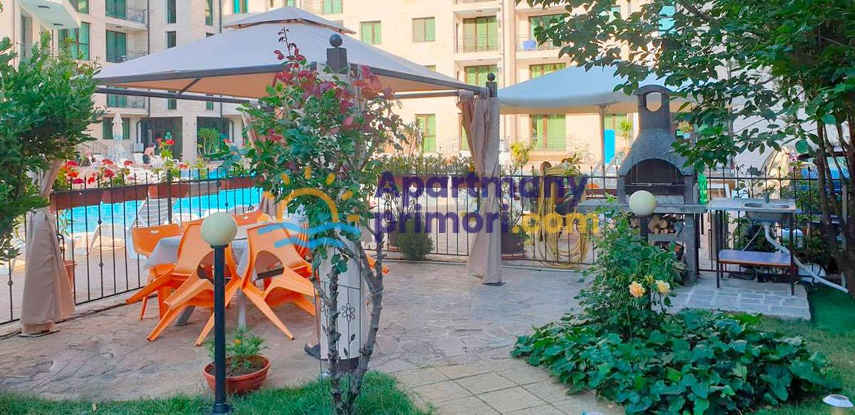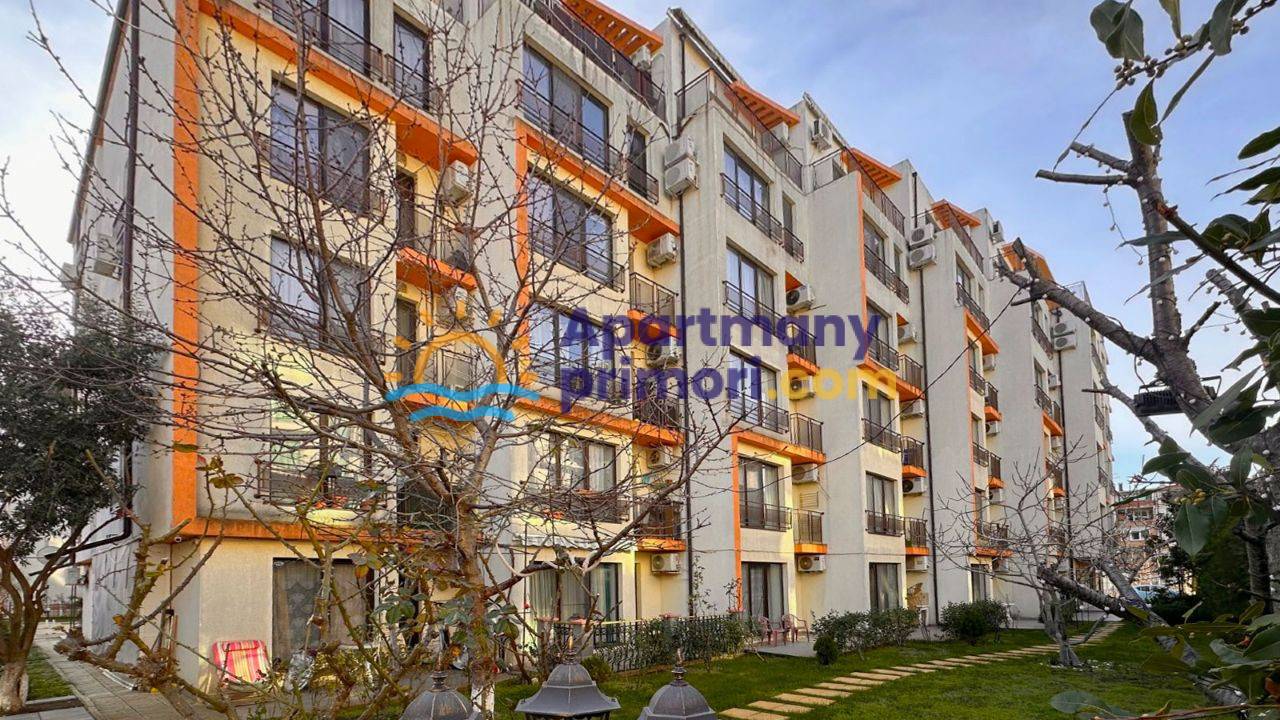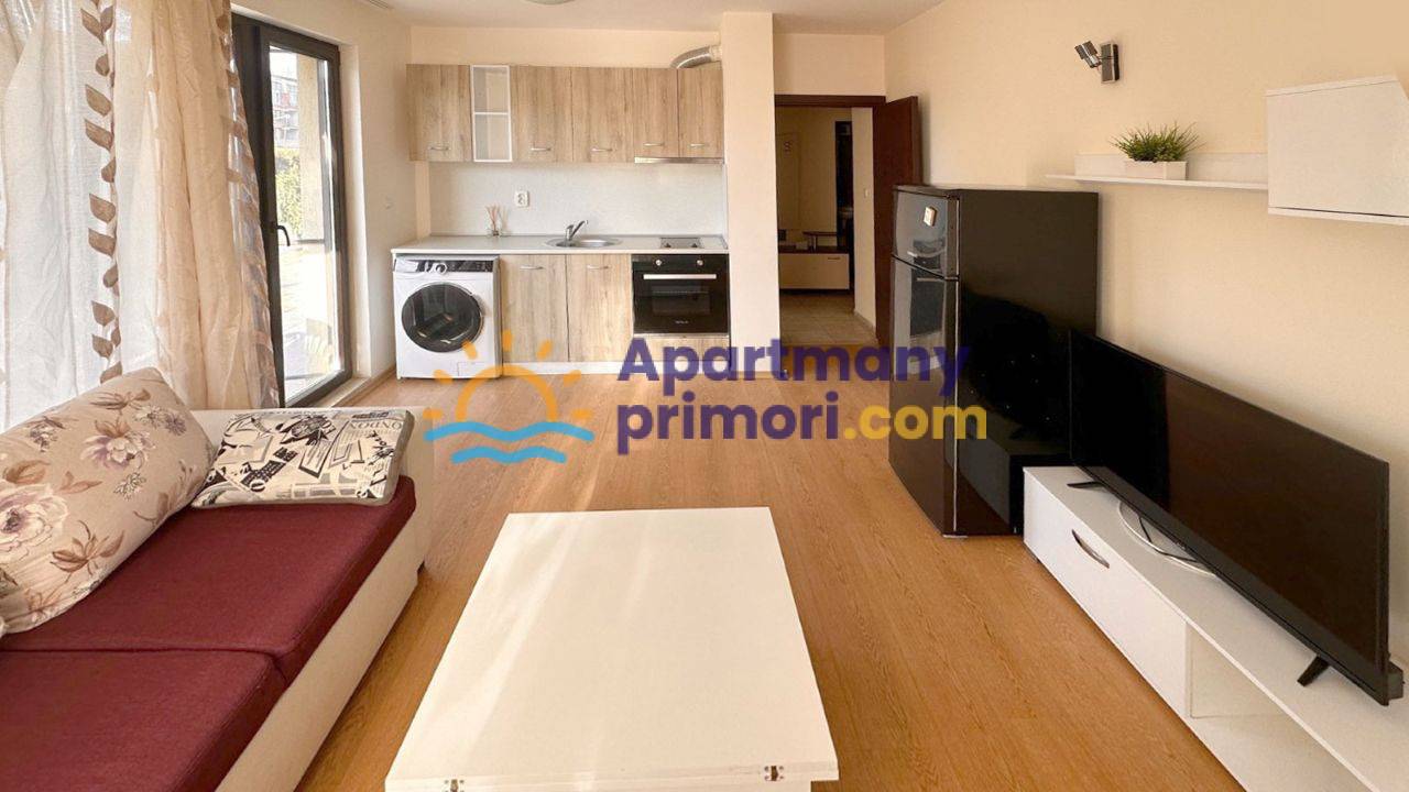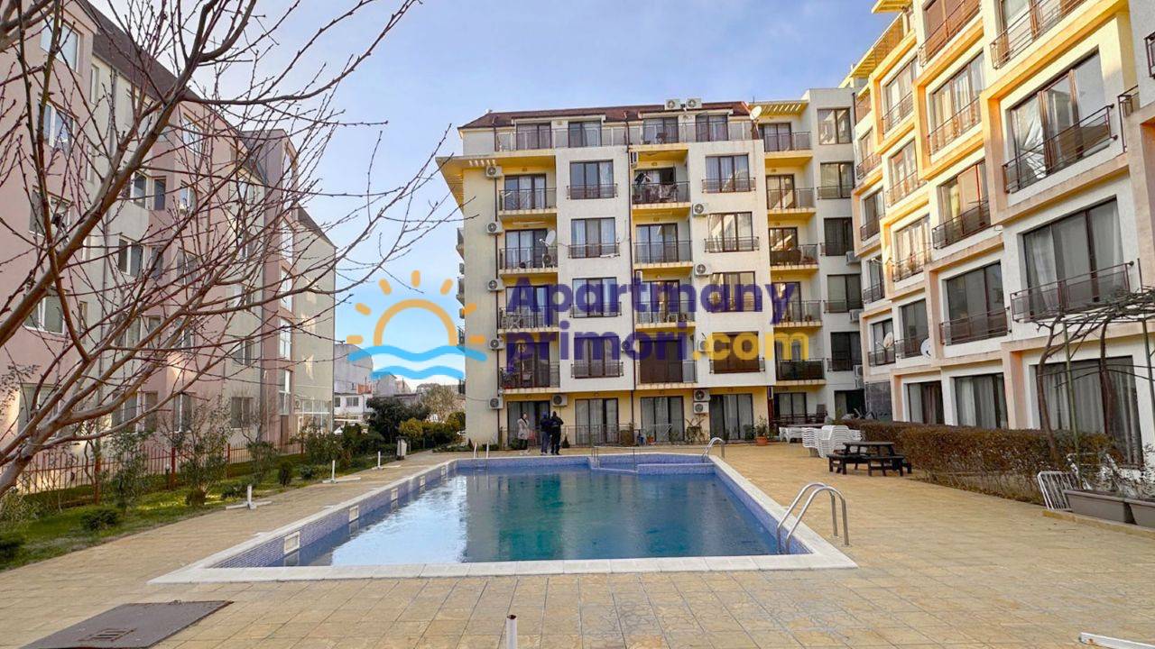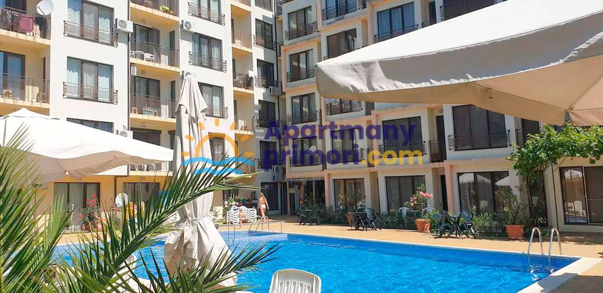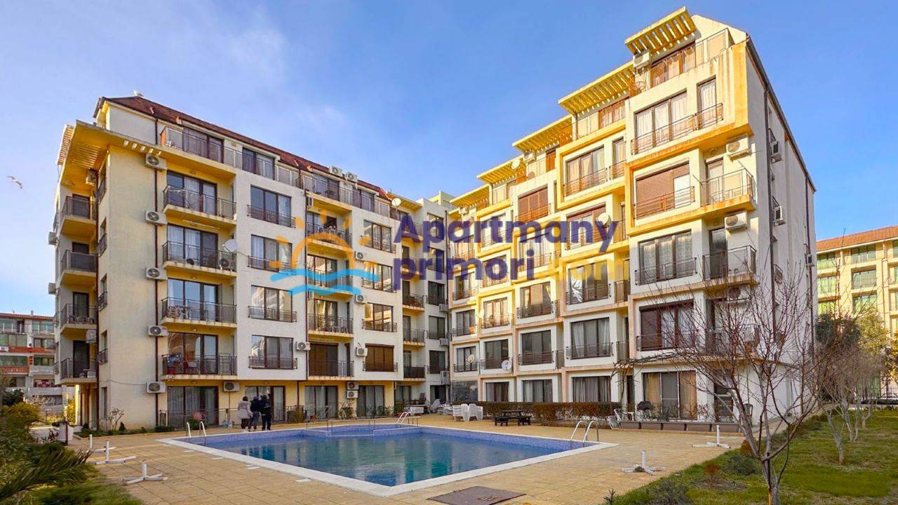 Realitná kancelária Leaders & Partners vám ponúka na predaj zariadený apartmán 2+kk (45 m²) s balkónom typ veranda, ktorý sa nachádza v rezidenčnom komplexe so spoločným bazénom, relaxačnou zónou a  v lokalite Slnečné pobrežie Amber Beach v Bulharsku. Apartmán sa nachádza približne 450 metrov od pláže. Veľmi nízky ročný poplatok za údržbu iba 250 € ročne!