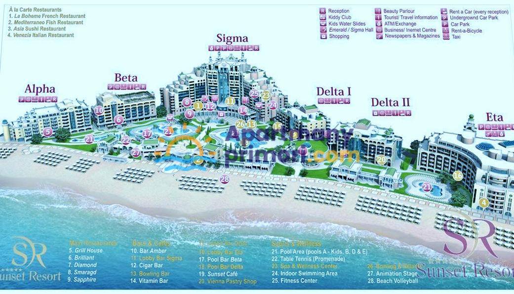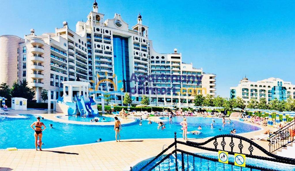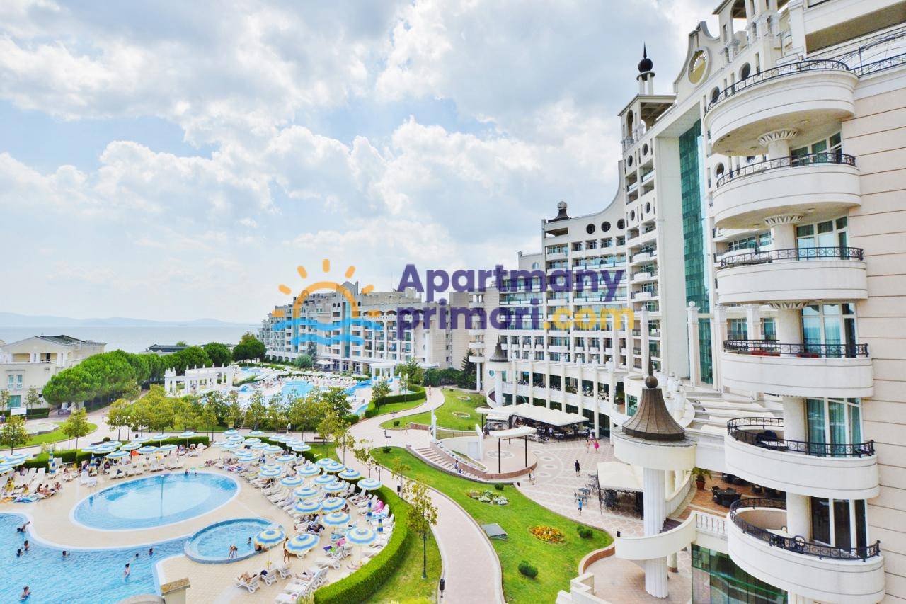 Realitná kancelária Leaders & Partners vám ponúka na predaj priestranný, zariadený apartmán hotelového typu 3+kk (134 m²) s priestrannou terasou, ktorý sa nachádza v prestížnom 5-hviezdičkovom SPA komplexe SunSet Resort s bazénmi v lokalite Pomorie v Bulharsku. Apartmán sa nachádza priamo pri mori a pláži.