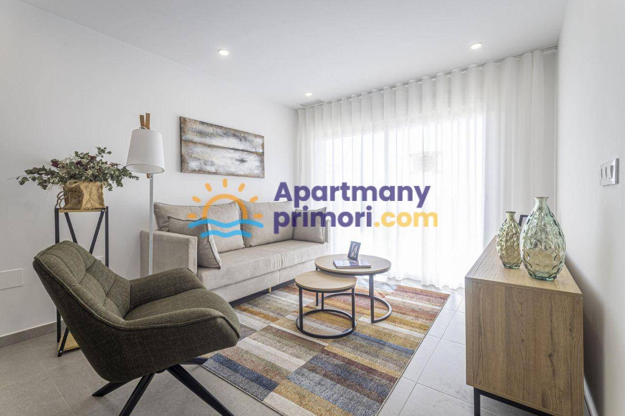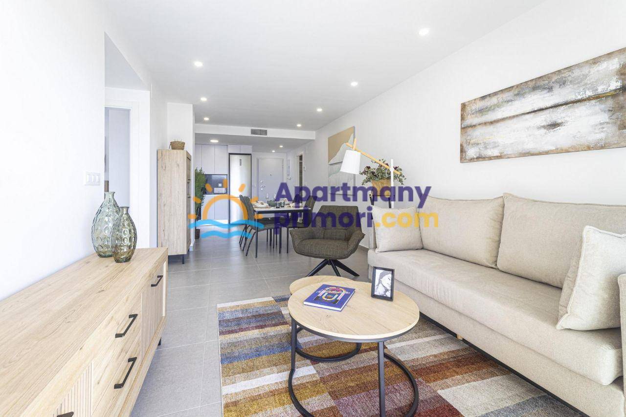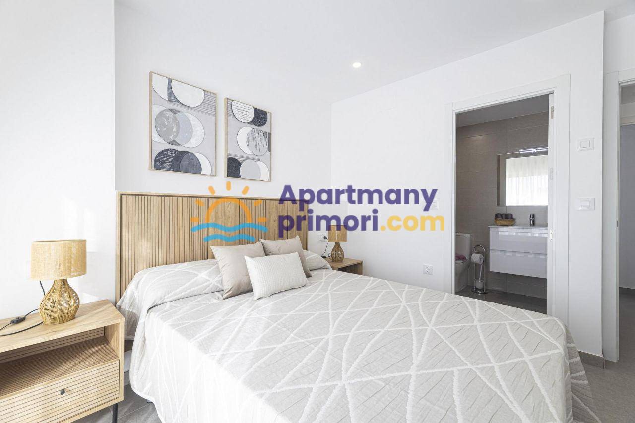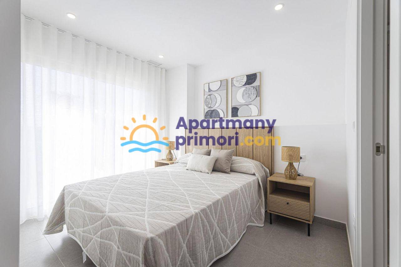 Realitná kancelária Leaders & Partners vám ponúka na predaj nový, moderne zariadený apartmán 4+kk (102 m²), s balkónom s výhľadom na more a prístav, ktorý sa nachádza v rezidenčnom komplexe so spoločným bazénom v lokalite Murcia-La Manga del Mar Menor v Španielsku. Apartmán sa nachádza do 50 metrov od pláže.