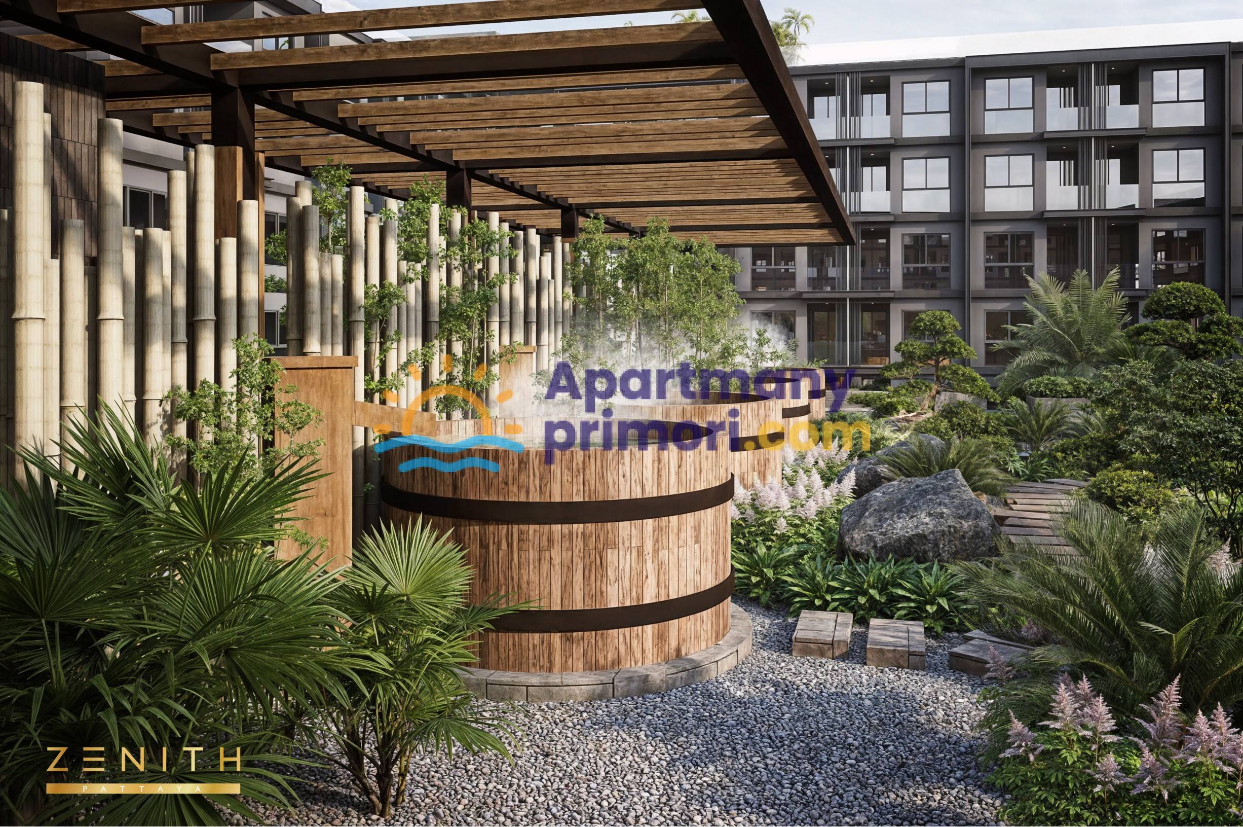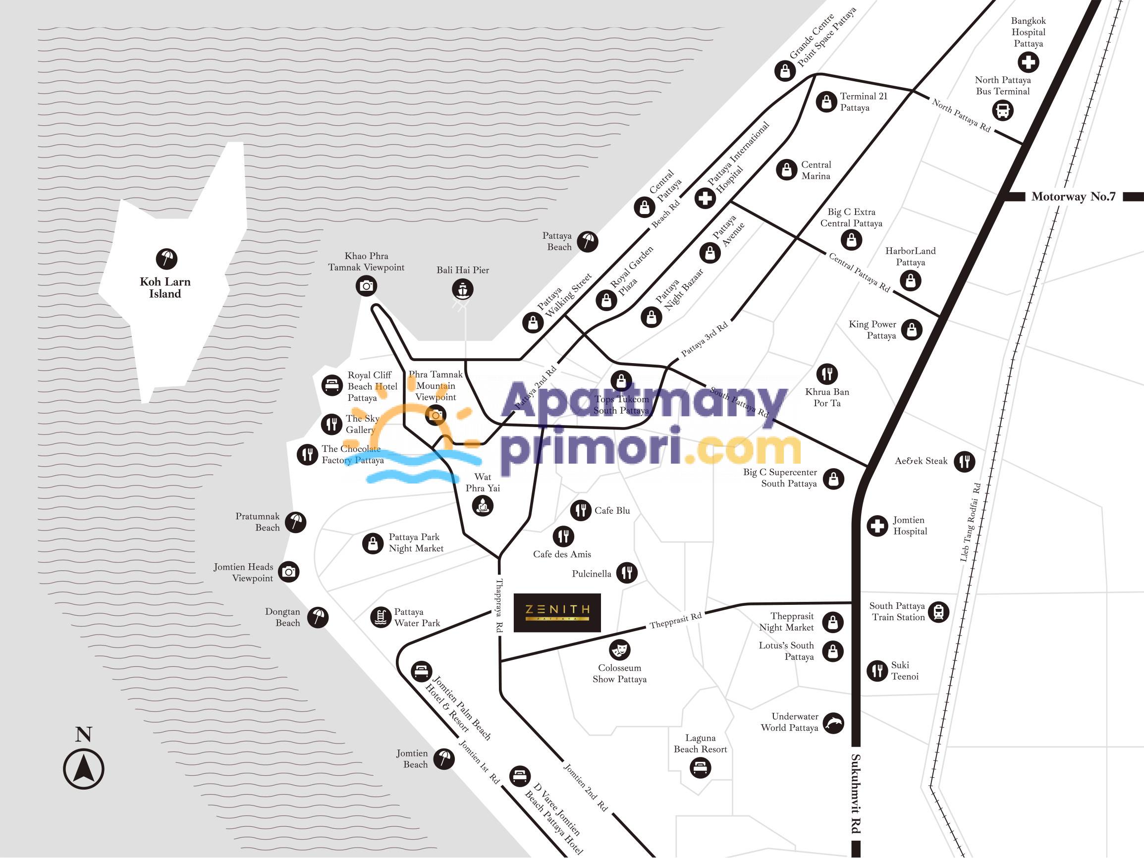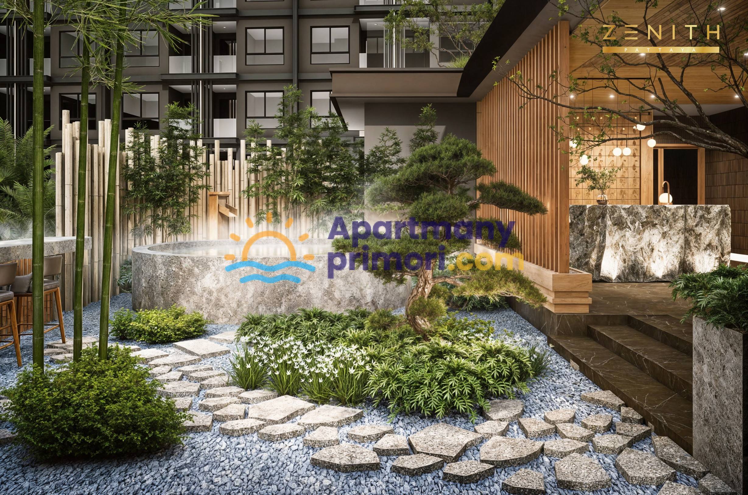 Zenith Pattaya má strategickú polohu len pár minút od hlavných dopravných spojení a poskytuje obyvateľom bezkonkurenčné pohodlie. Vďaka tesnej blízkosti známych golfových ihrísk a dvoch veľkých medzinárodných letísk – U-Tapao v Sattahip a Suvarnabhumi v Bangkoku – tento komplex zaisťuje bezproblémovú konektivitu. Zenith Pattaya sa nachádza v troch sedemposchodových budovách v rozľahlej oblasti s nádychom japonskej architektúry a dizajnu. Komplex ponúka 582 skvele navrhnutých apartmánov.