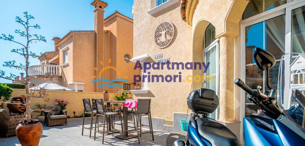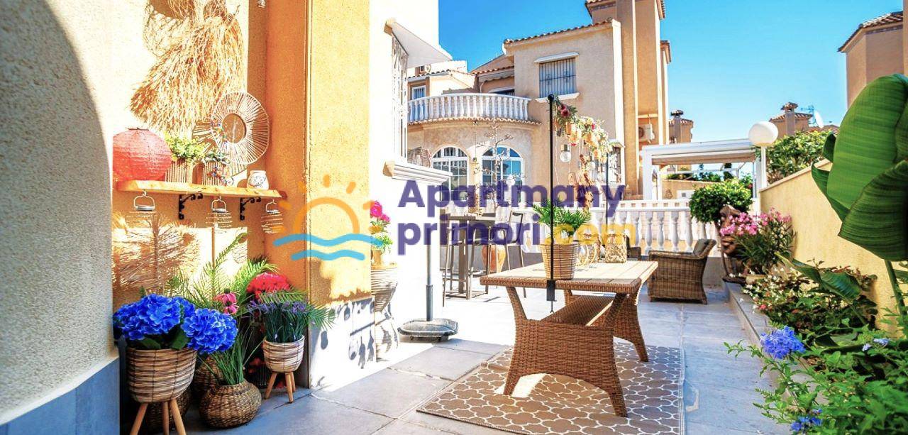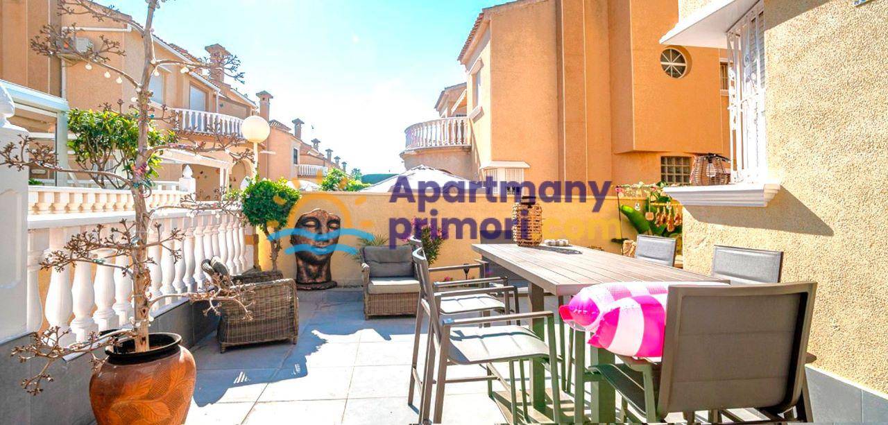 Realitná kancelária Leaders & Partners Vám ponúka na predaj pekný dvojpodlažný dom 3+1 (72 m²) + pozemok (200 m²) s 2 kúpeľňami, s peknou terasou a spoločným bazénom. Dom sa nachádza v rezidenčnom komplexe v lokalite Orihuela Costa - La Florida v Španielsku. Vzdialenosť od mora a pláže Playa Flamenca cca 1 km. K domu patrí aj vlastné parkovacie miesto. Vynikajúca voľba ako na trvalé bývanie, tak na dovolenku.