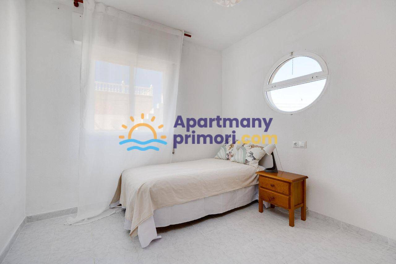 Realitná kancelária Leaders & Partners vám ponúka na predaj radový dvojposchodový dom 4+kk (72 m²) s dvoma kúpeľňami, strešnou terasou a vlastným pozemkom, ktorý sa nachádza v meste Torrevieja-El Salado v Španielsku, nedľeko veľkého Ružového jazera. K domu prináleží parkovacie miesto.