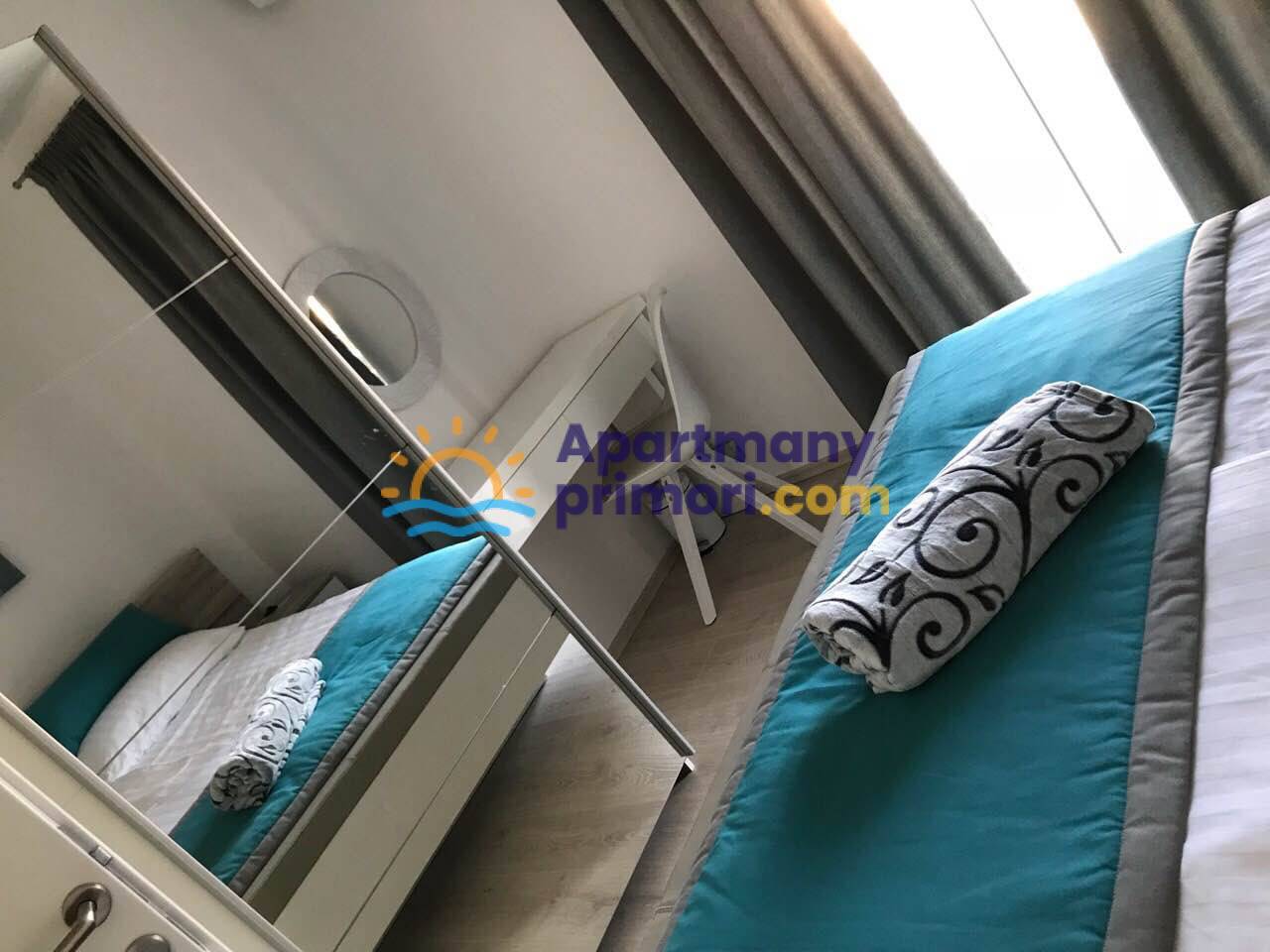 Apartmán 5 - 46 m2: jedna spálňa, obývačka + kuchyňa + jedáleň, kúpeľňa, terasa 16 m2 a balkón 4 m2.