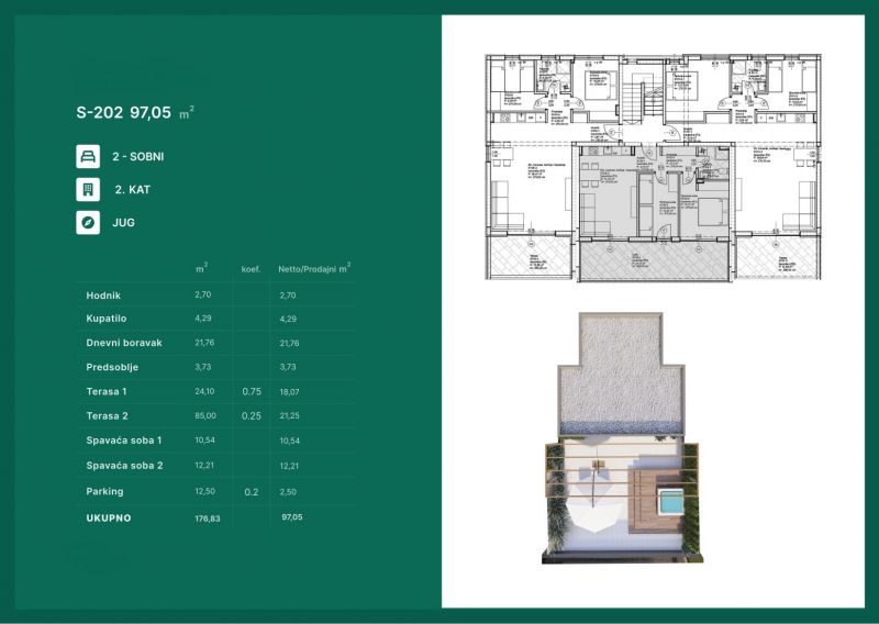 Vám ponuka na predaj v chorvátskom meste Zadar - Privlaka apartmán o rozlohe 97,15 m2 na druhom poschodí apartmánového domu s celkovo desiatimi bytmi. Dom bol postavený z kvalitných materiálov v roku 2024.